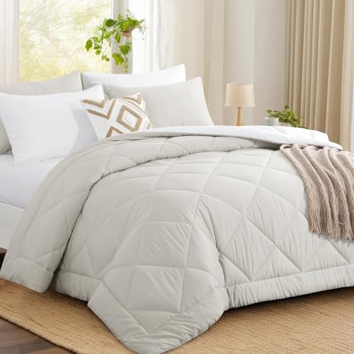 Guchuang Bedding Coverless Duvet Double Size 10.5 Tog-Reversible Comforter for All Seasons-Lightweight Down Alternative Comforter (White,Double)