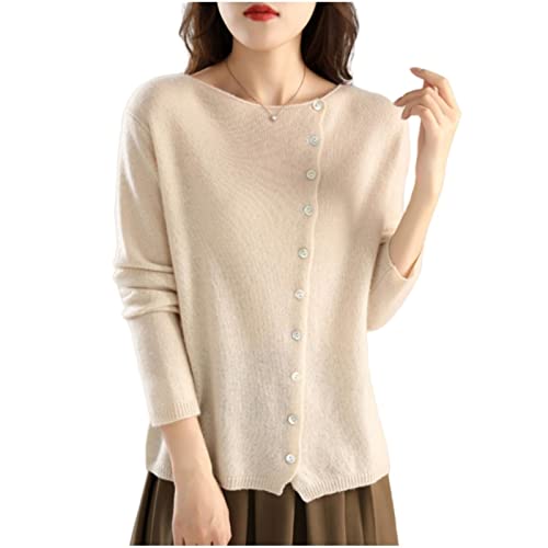 MOGSA Cardigan Sweaters Spring Cashmere Sweater Women'S O-Neck Knitted Cardigan Light Warm Jacket Slim Tops-Off White,L