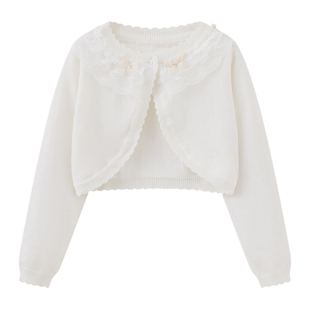 Kids Girls Bolero Cardigan â Cropped Knit Shrugs, Long Sleeve Button Sweater, Solid Color Thin Cover Up, White, Compatible with Kids Baby Fashion