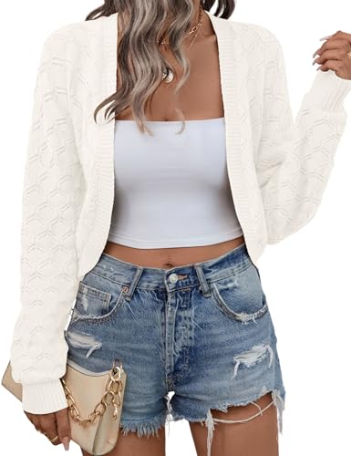 LYSINK Womens Cropped Knitted Shrugs Cardigan Long Sleeve Open Front Bolero Sweater Casual Vacation Outwear (White, S)