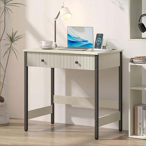 Manora White Desk with Drawers - 80x50x76cm Small Desk for Kids, Office & Dressing, Built - in Power Strip,Makeup Storage for Bedroom Living Room, White