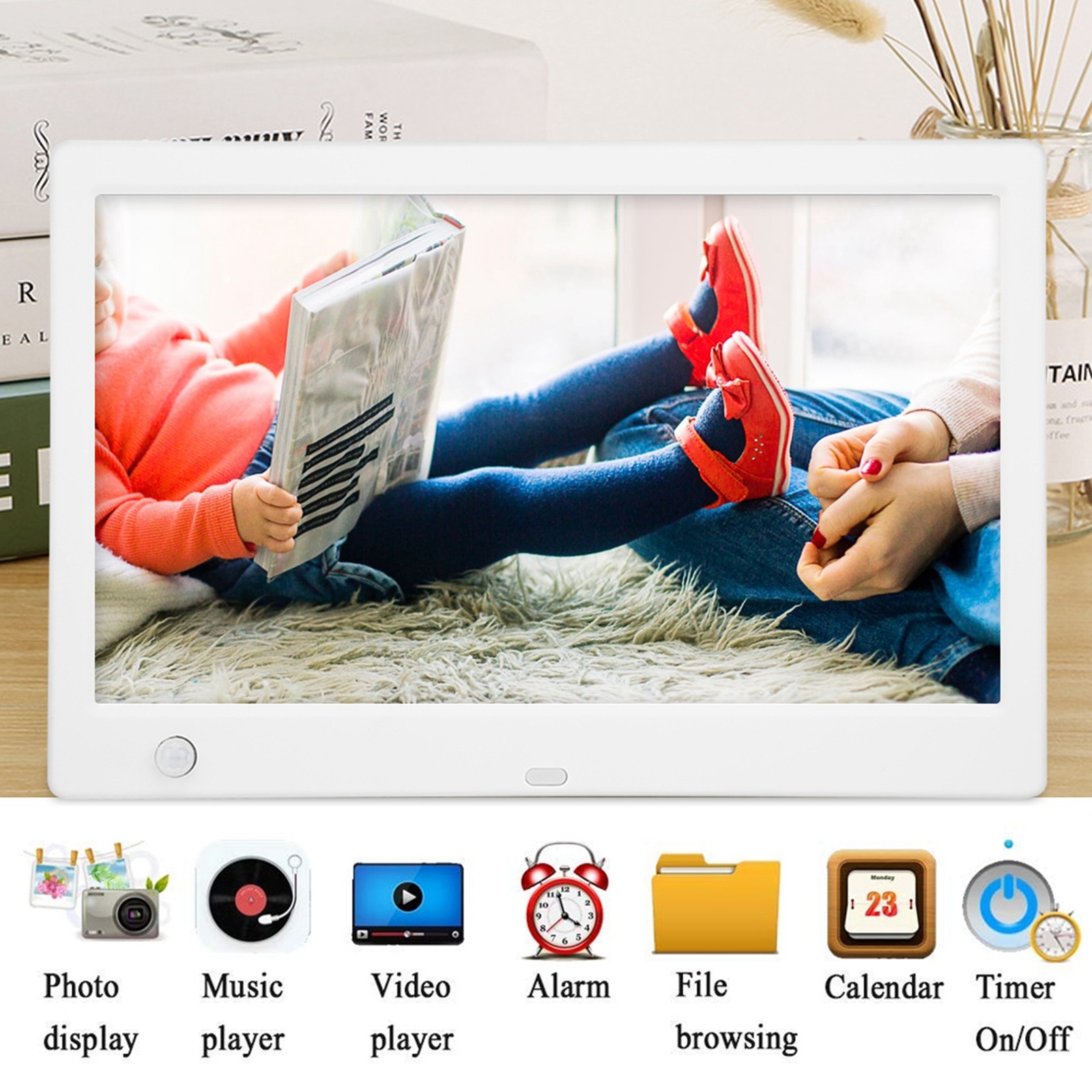 White 12Inch 1280*800HD Digital Photo Picture Frame Alarm Clock Movie Playe TU