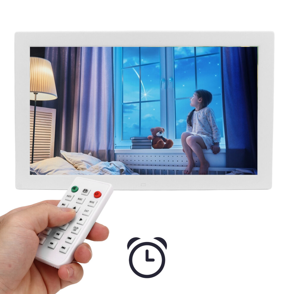 (12 Inch White) Digital Photo Frame with Music/Video/Calendar/Alarm Clock (Remote Control/Black/Non-WiFi) Digital Portrait Holder 1280 * 800 HD IPS Di
