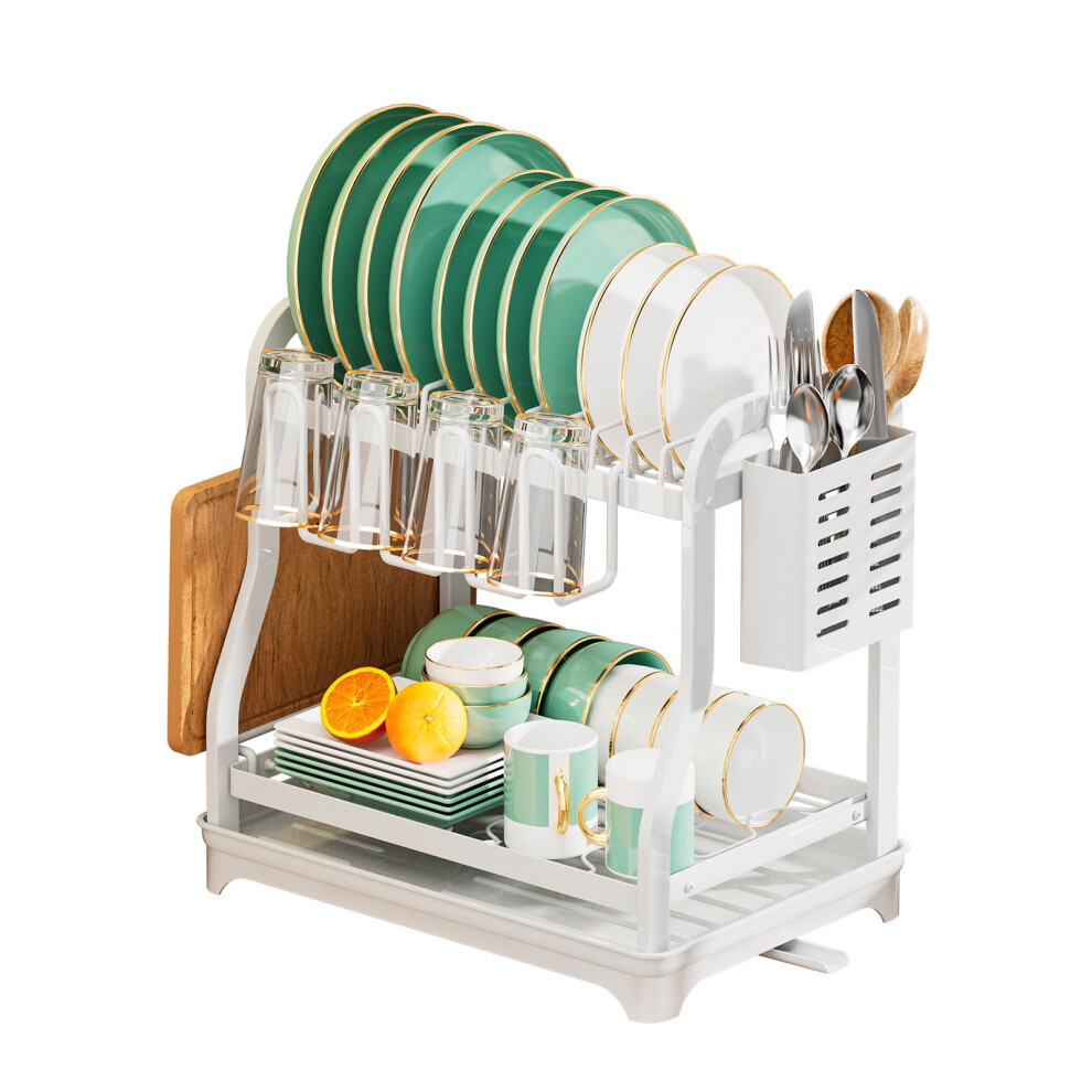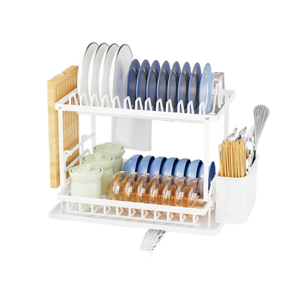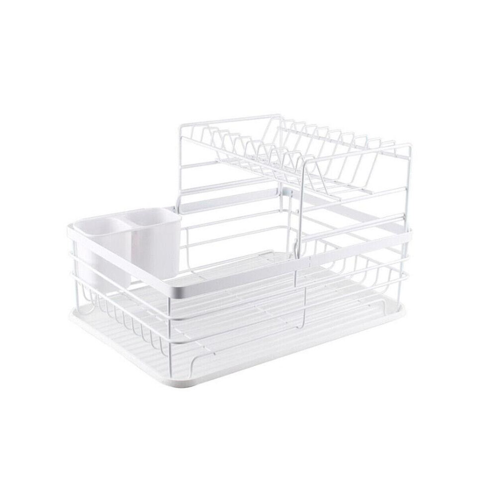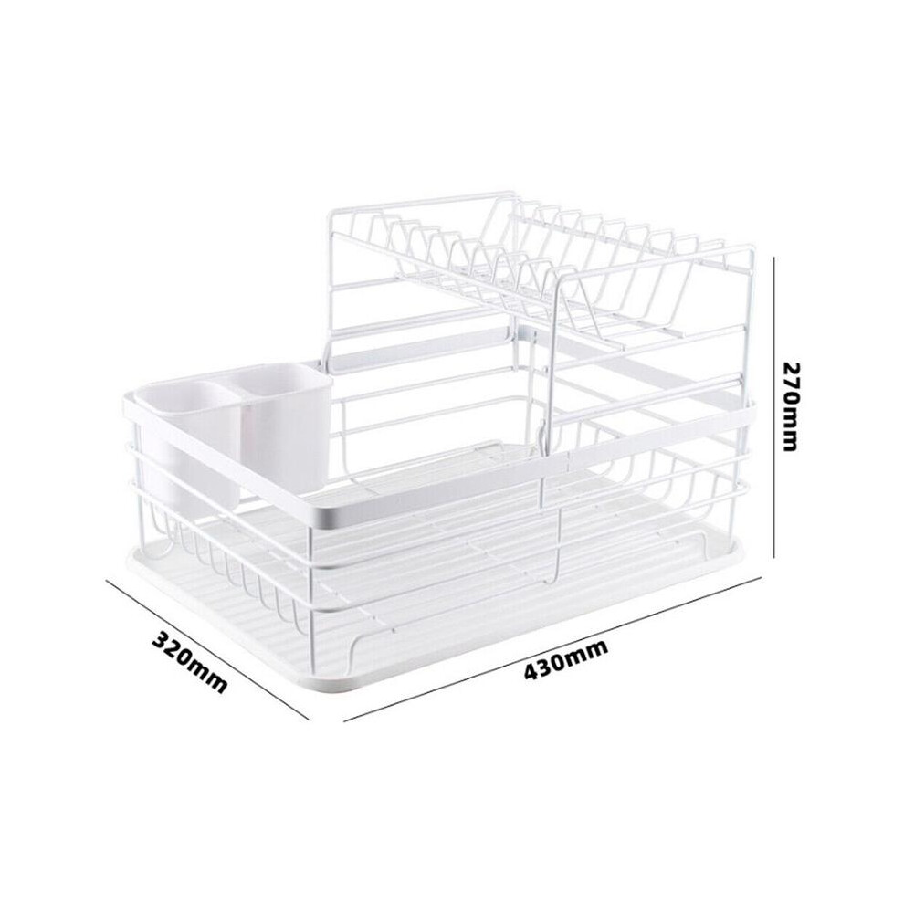 (White) 2Tier Dish Drainer Rack with Drip Tray Cutlery Holder Plate Rack Kitchen Sink
