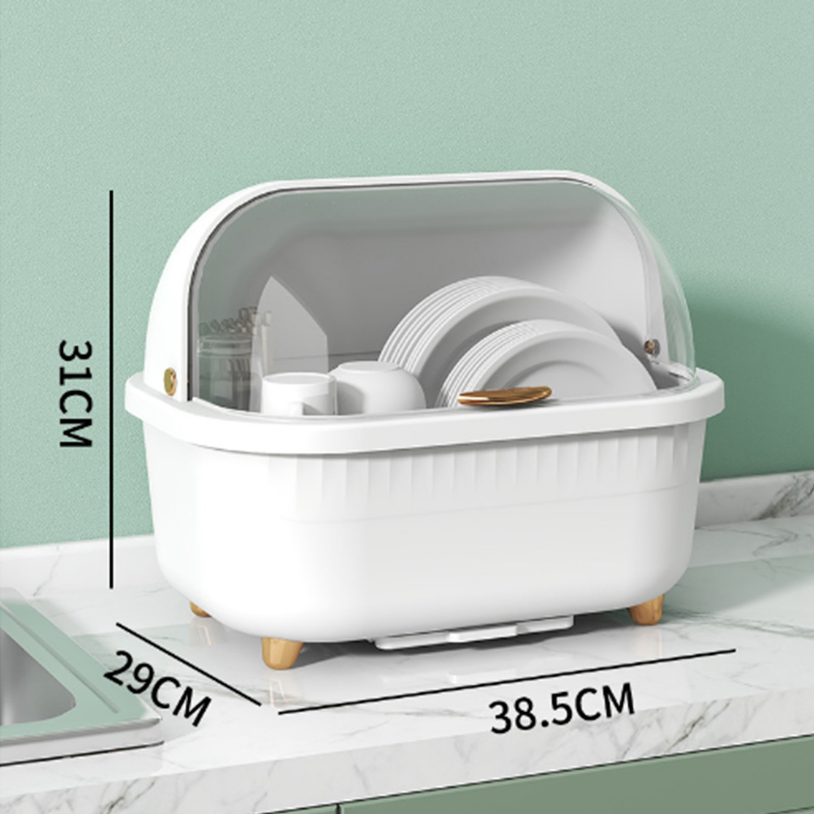 (White L)Dish Drying Box Multifunctional Space Saving Dish Drainer With Lid