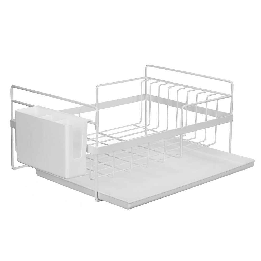 White Dish Drainer Rack with Removable Drip Tray and Cutlery Holder