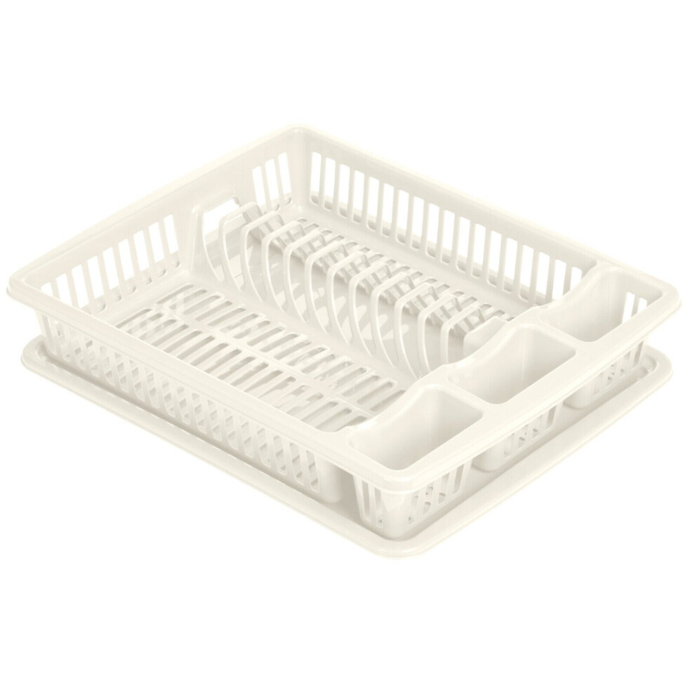 SAFRI White Large Plastic Dish Drainer with Drip Tray, Plate Drying Rack and Cutlery Holder (White Plate Rack)