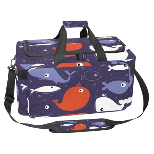 lcndlsoe Large Sports Gym Bag, 30L Duffel Bag for Travel, Workout, Fitness & Sport - Orange Blue White Dolphin