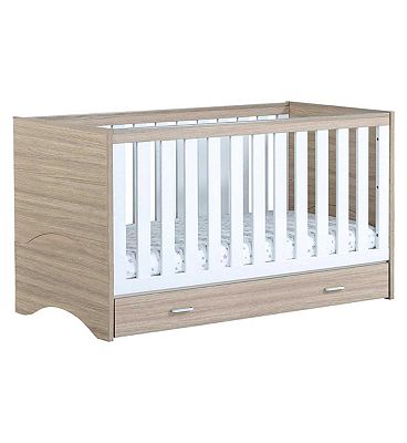 Babymore Luno Cot Bed with Drawer - Oak White