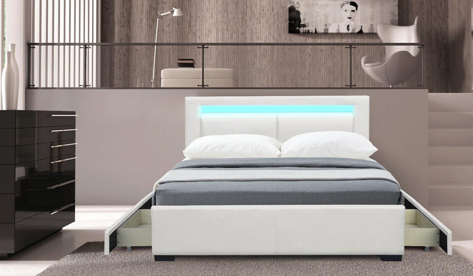 Tokyo RGB LED Bluetooth Speaker Bed Frame With 4 Drawer Storage ( White ) King