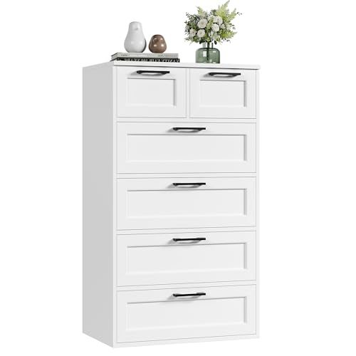 joukares Bedroom Drawers, Tall 6-Drawer White Chest of Drawers Bedroom, Cabinet with Large Capacity, Modern Furniture Piece for Bedroom, Living Room, Closet, Or Hallway White