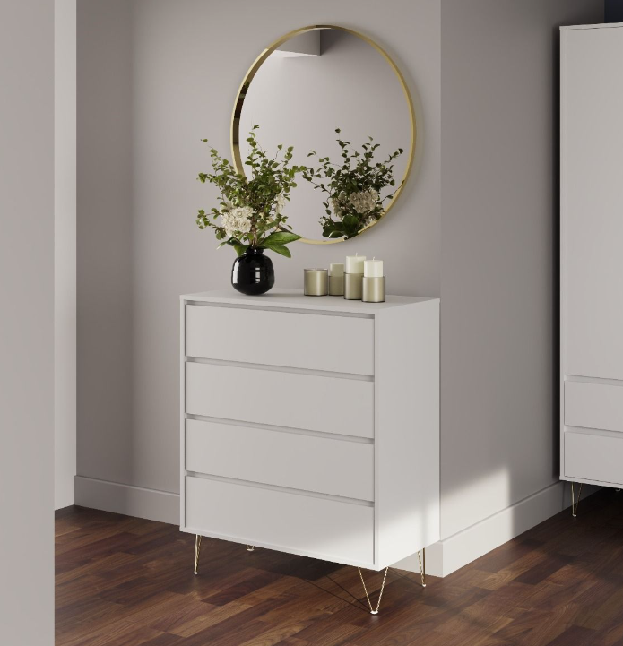 Chest of 4 Drawers White Modern Sideboard Bedroom Cabinet Metal Industrial Legs