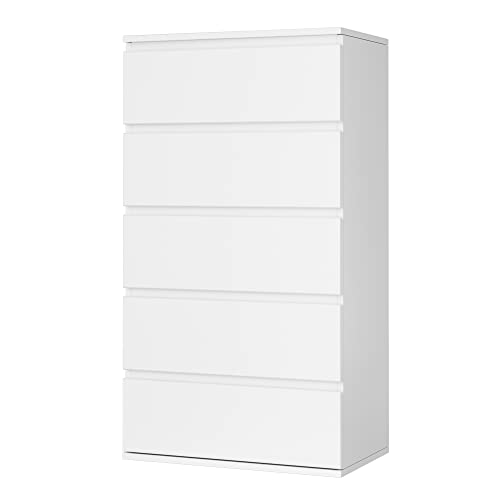 FOREHILL White Chest of Drawers Bedroom Storage Cabinet with 5 Drawers Tall Chest of Drawers Dresser Wooden Cupboard Bedroom Furniture for Living Room 55x33x100cm