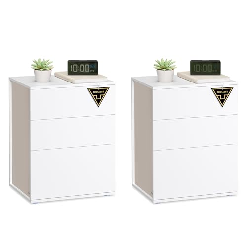 VASAGLE 2 Set Bedside Tables with 3 Drawers, Superfast Toolless Assembly, Bed Side Cabinet Nightstand, White Chest Of Drawers for Bedroom/Living Room, LET779W01