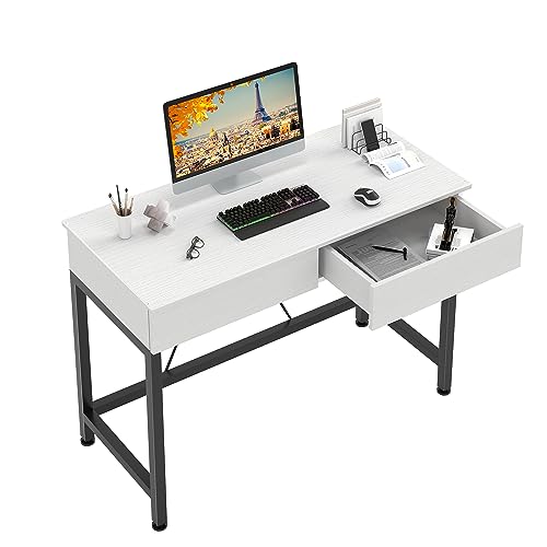 CAIYUN Computer Desk with Drawers, Dressing Table, Vanity Desk, Make Up Desks, Home Office Desks with Storage, Study Tables for Small Space, Laptop Table Made of Wood and Metal, 39.4", White