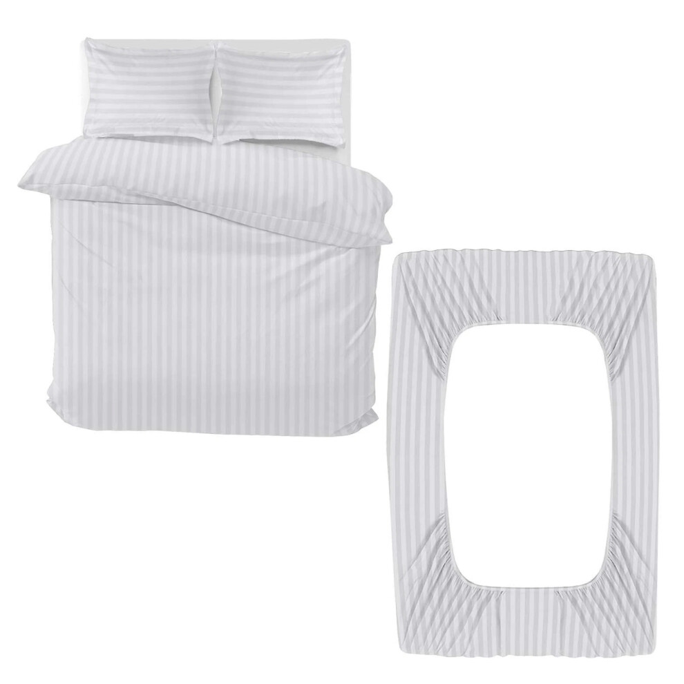 (Double, White) Stripe Duvet Covers Bedding Set Fitted Sheet & Pillowcase