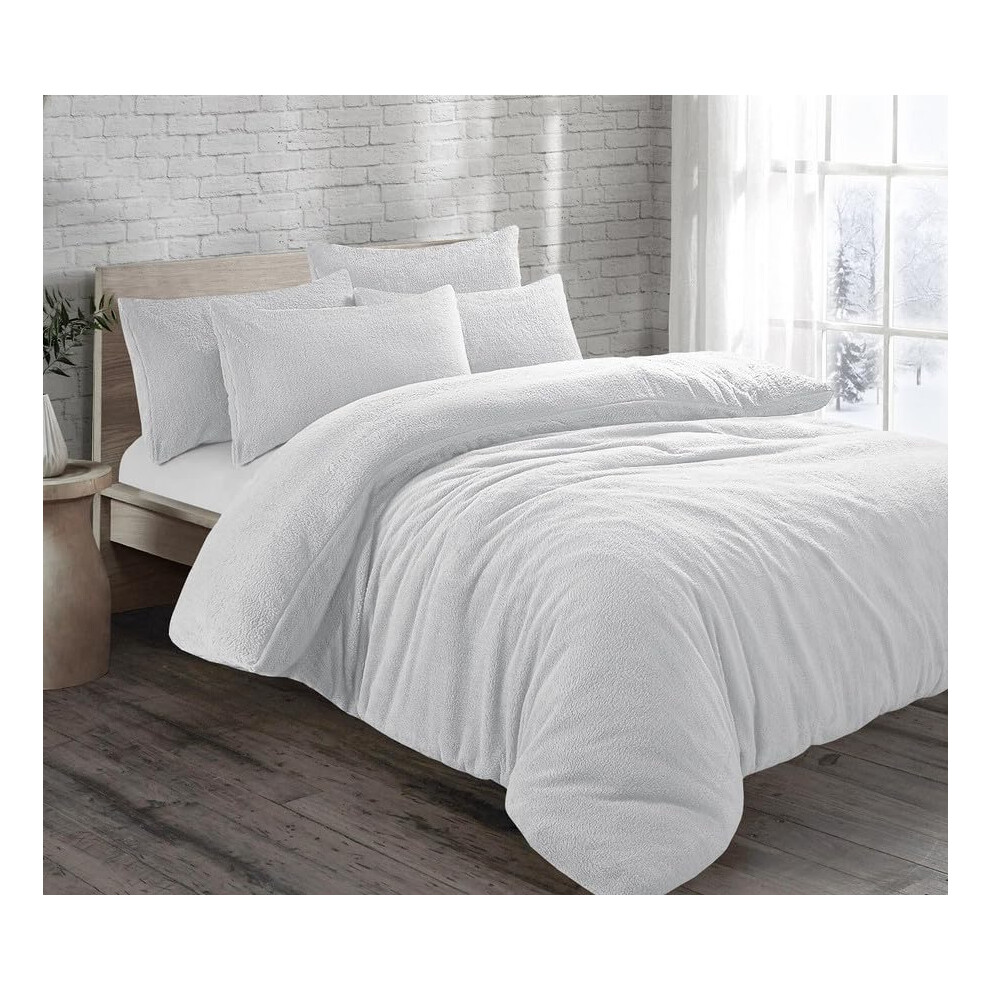 Brentfords Teddy Fleece Double Duvet Set White, Double Bed Duvet Covers Winter Bedding Double Bed Set with Pillowcases Teddy Bear Fleece Quilt Cover Super Soft Comfy