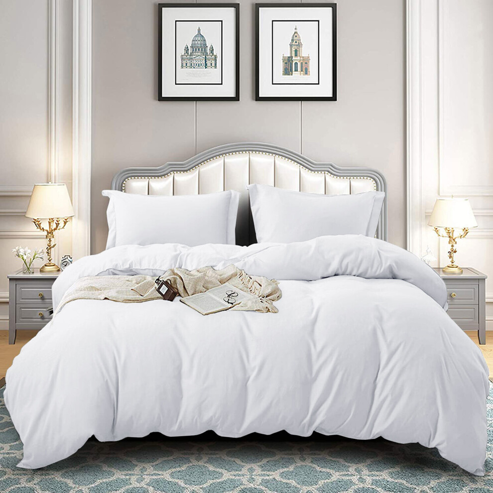 400 Thread Count Cotton King-Size-Duvet-Cover Sets White, 100% Long Staple Cotton White-Bedding-Set, Luxurious soft sateen Quilt-Covers King