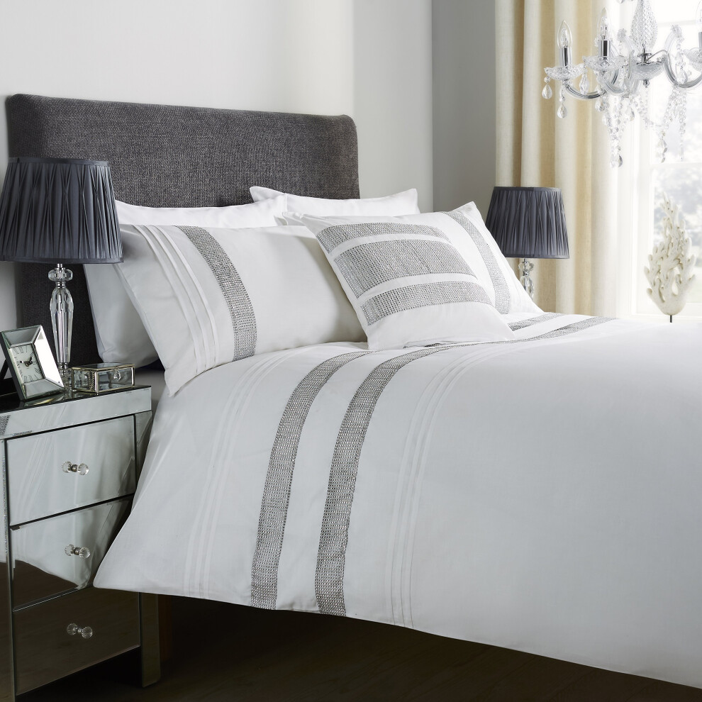 LOOMS & LEAVES Diamante Style Luxury GLITZ Duvet Covers Quilt Cover Sets Bedding Sets (White, King)