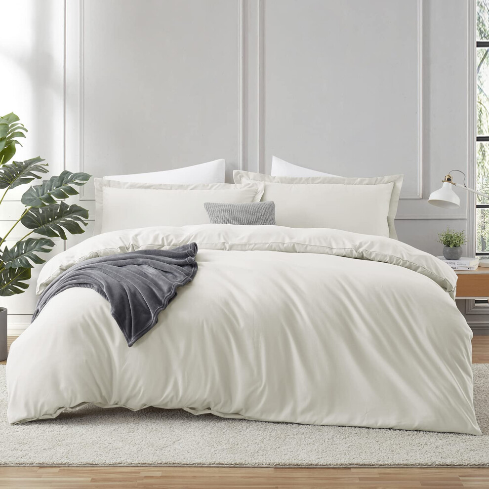 Hearth & Harbor Off White Duvet Cover Queen Size - 3 Piece Queen Duvet Cover Set Soft Double Brushed Queen Size Duvet Covers with Button Closure 1 D