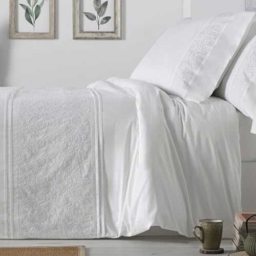 Burrito Blanco | Embroidered Cotton Duvet Covers | for 135 cm Bed Cotton Percale 200 Thread Count | Colour 402 White (135 x 190/200 cm)