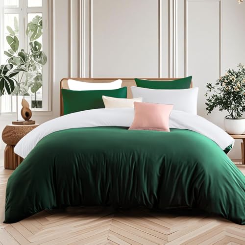 Soifox King Size Duvet Cover Sets Green and White, 3 Piece Microfiber Reversible King size Bedding Bed Sets, Soft and Non Iron Quilt Duvet Covers with 2 Pillowcases 50x75cm
