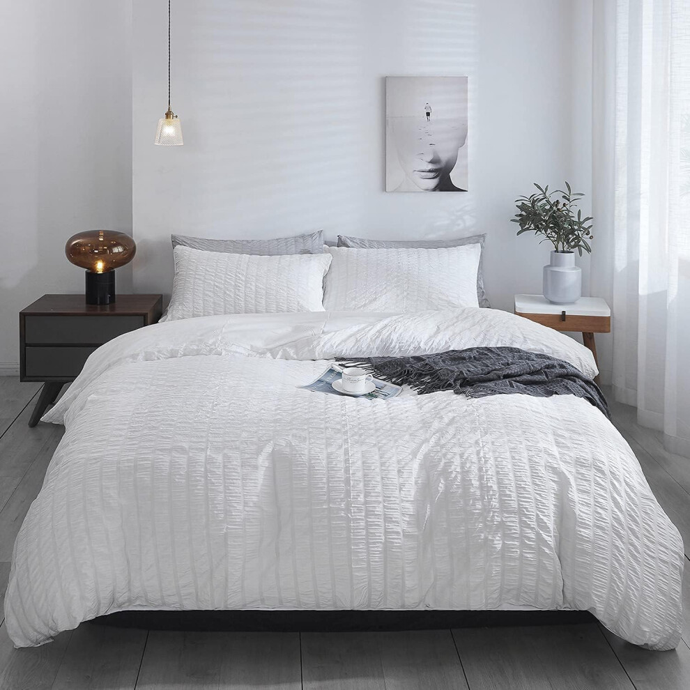 Seersucker Bedding Set King Bed Duvet Cover Sets 100% Cotton White Waffle Quilt Covers with Pillowcases