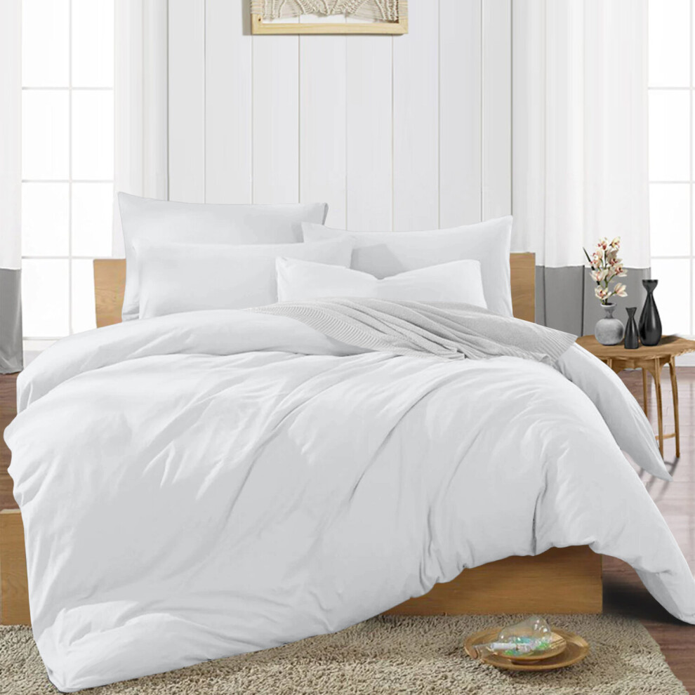 (DOUBLE, WHITE) Plain Duvet Quilt Covers Reversible Bedding Set