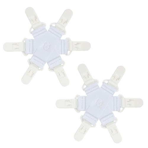 QOPAHI Bed Sheet Detangler with 6-Clip, Wad Preventer Stop Bed Sheets/Duvet Covers/Blankets from Tangling, Twisting & Balling up in Dryer Washer and Dryer, 2 pcs(White)