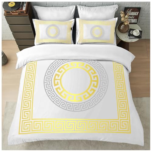 GC GAVENO CAVAILIA Greek King Size Duvet Cover Sets - Microfibre Geometric Bedding Sets with Pillowcases - Durable & Easy Care Quilt Covers - Soft Duvet Comforter Cover, White