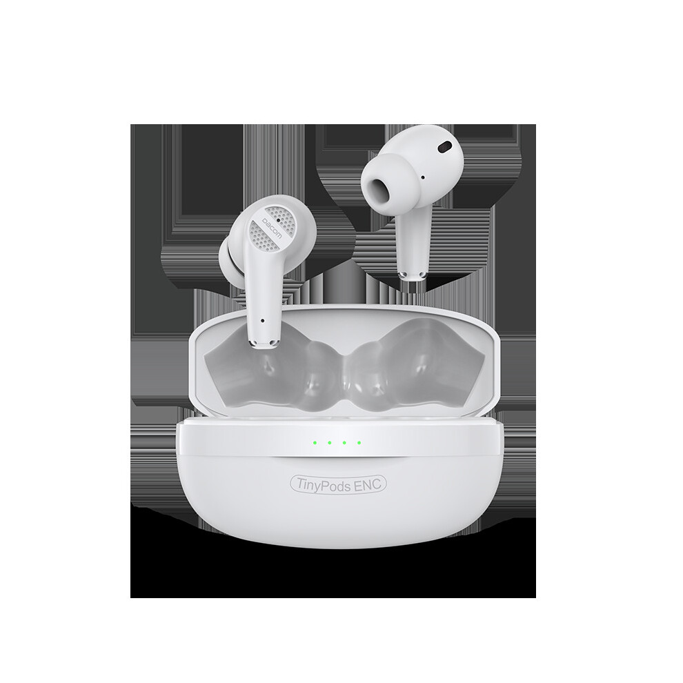 (TinyPods ENC White) Noise Cancellation Earphones TWS Bluetooth 5.0 DACOM TinyPods ENC Earbuds Bass True Wireless Stereo Headphones AAC Type-C