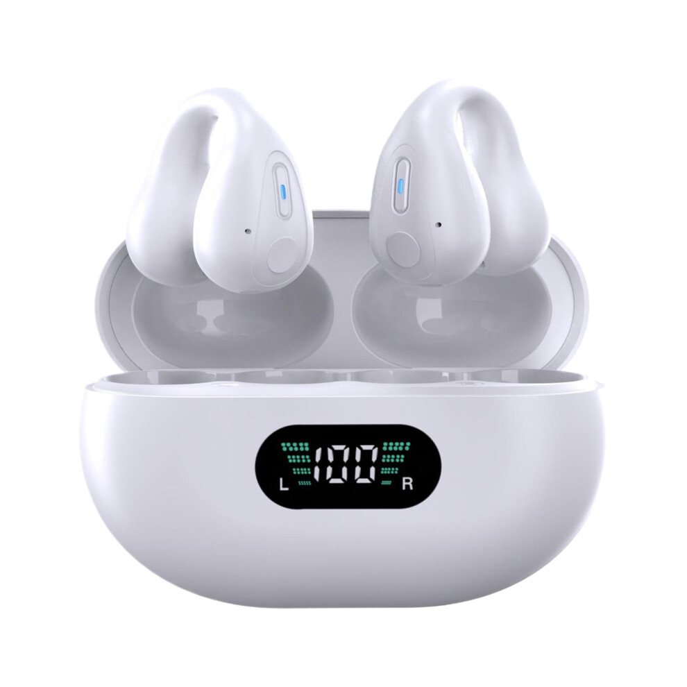 Open Ear Bone Conduction Headphones,Comfort-Clip On Wireless Earbuds Bluetooth 5.3, Sports Ear Buds with ENC Mic, 36 Hours HlFl Earpods with LED Display Charging Case,lPX7 Running Earphones, White
