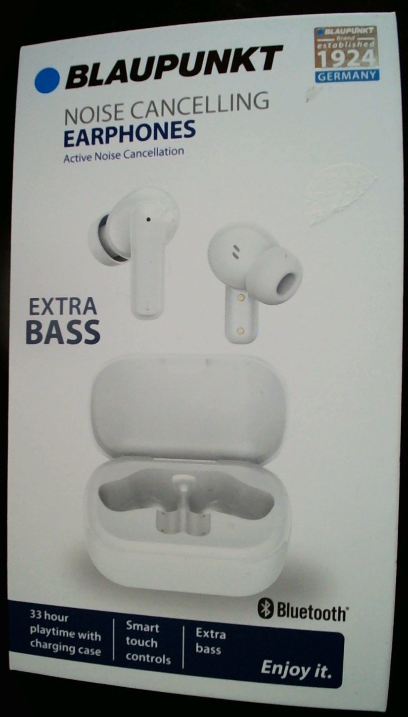 Blaupunkt Noise Cancelling Earphones. White. Extra Bass. 33hr Play. Buit in Mic