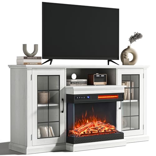 INMOZATA Electric Fire Insert TV Stand, Entertainment Center Console Table with Realistic LED Flame Effect, Remote Control&Overheat Protection, White, 23" Fireplace, for 65" TV