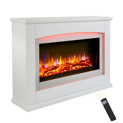 Endeavour Fires Danby 48" Electric Fireplace Suite with Realistic Flame & Log Effect Fire, 13-Colour LED Lighting, Remote Control, Off-White Surround