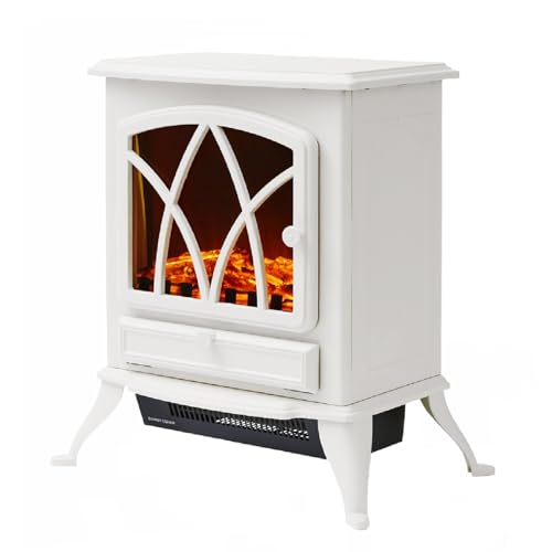 VonHaus Electric Stove Heater 1800W – Indoor Log/Wood Burner/Burning Effect, Free Standing Fire, Portable Fireplace, LED Flame, 2 Heat Settings, Adjustable Thermostat, White – H52 x W38 x D26cm