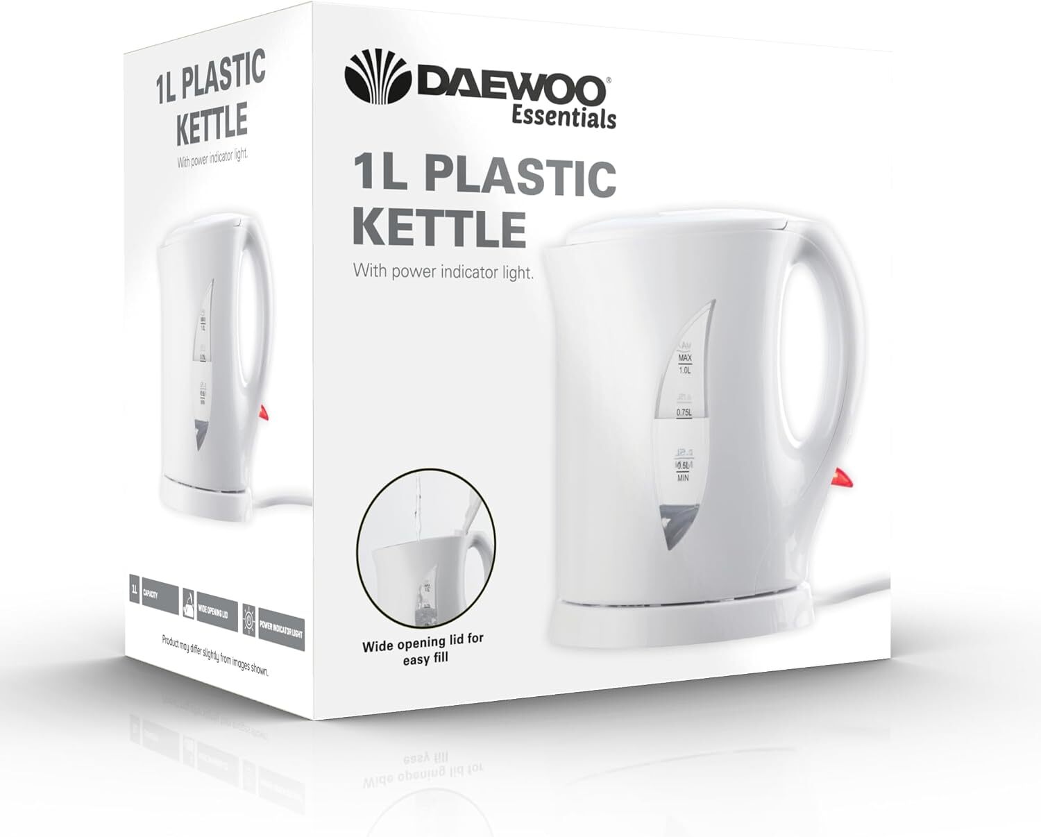 Daewoo 1400W White Electric Cordless Kettle 1L Space Saver Lightweight Fast Boil