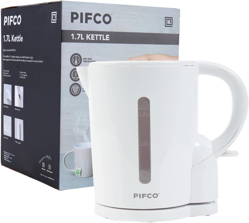 PIFCO White 1.7L Electric Kettle - Lightweight and Compact Cordless Kettle for