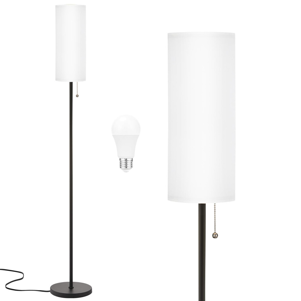 ValueLights Charlie White Single Stem Floor Lamp with Fabric Drum Lamp Shade and LED Bulb