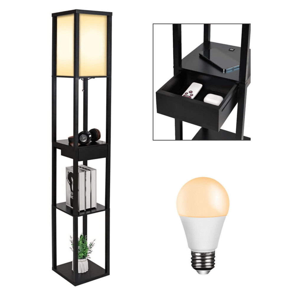 (White) LED Floor Lamp Modern with Shelves Storage Display