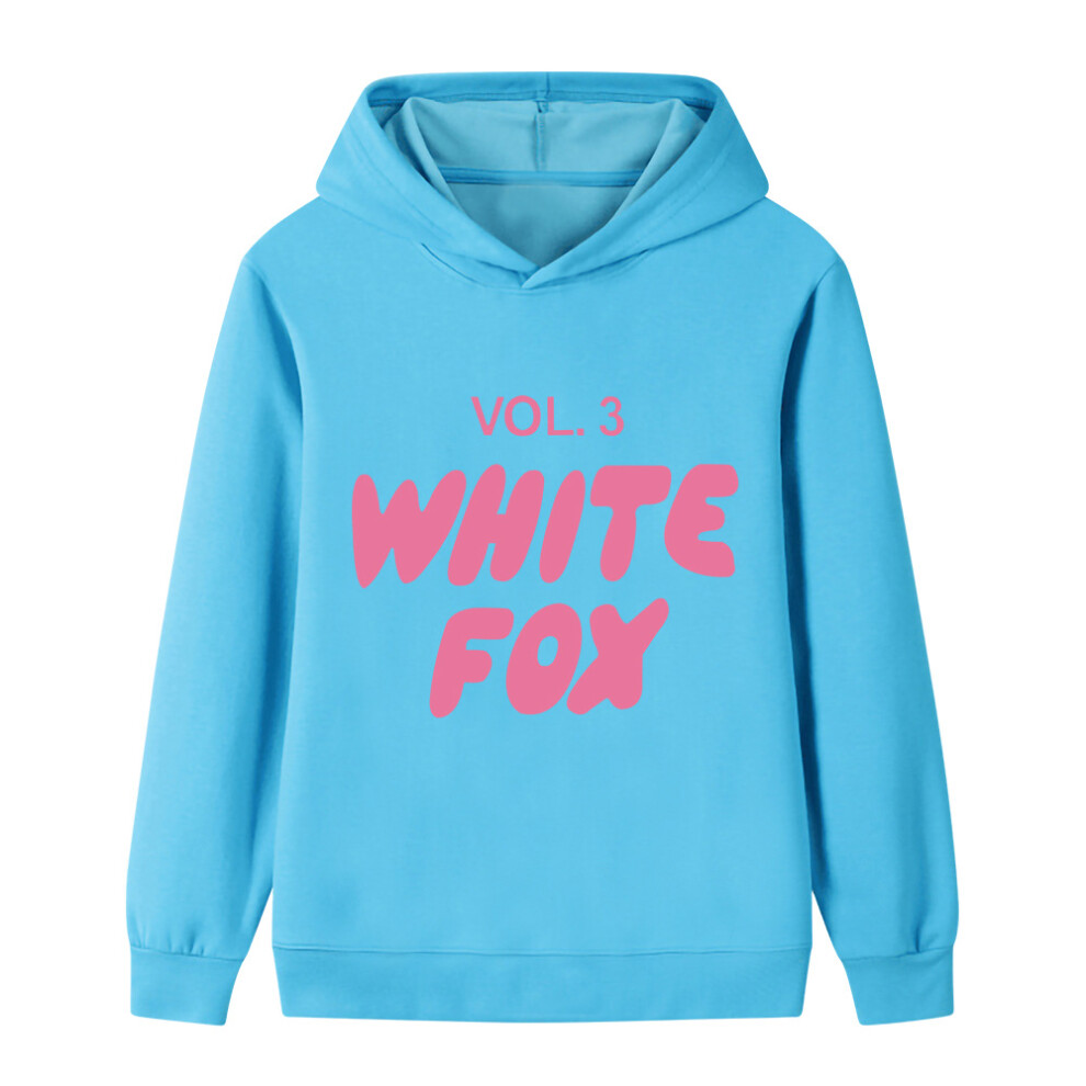 (Light blue, 150cm) Cartoon WHITE FOX printed hoodie for middle and older children B1130