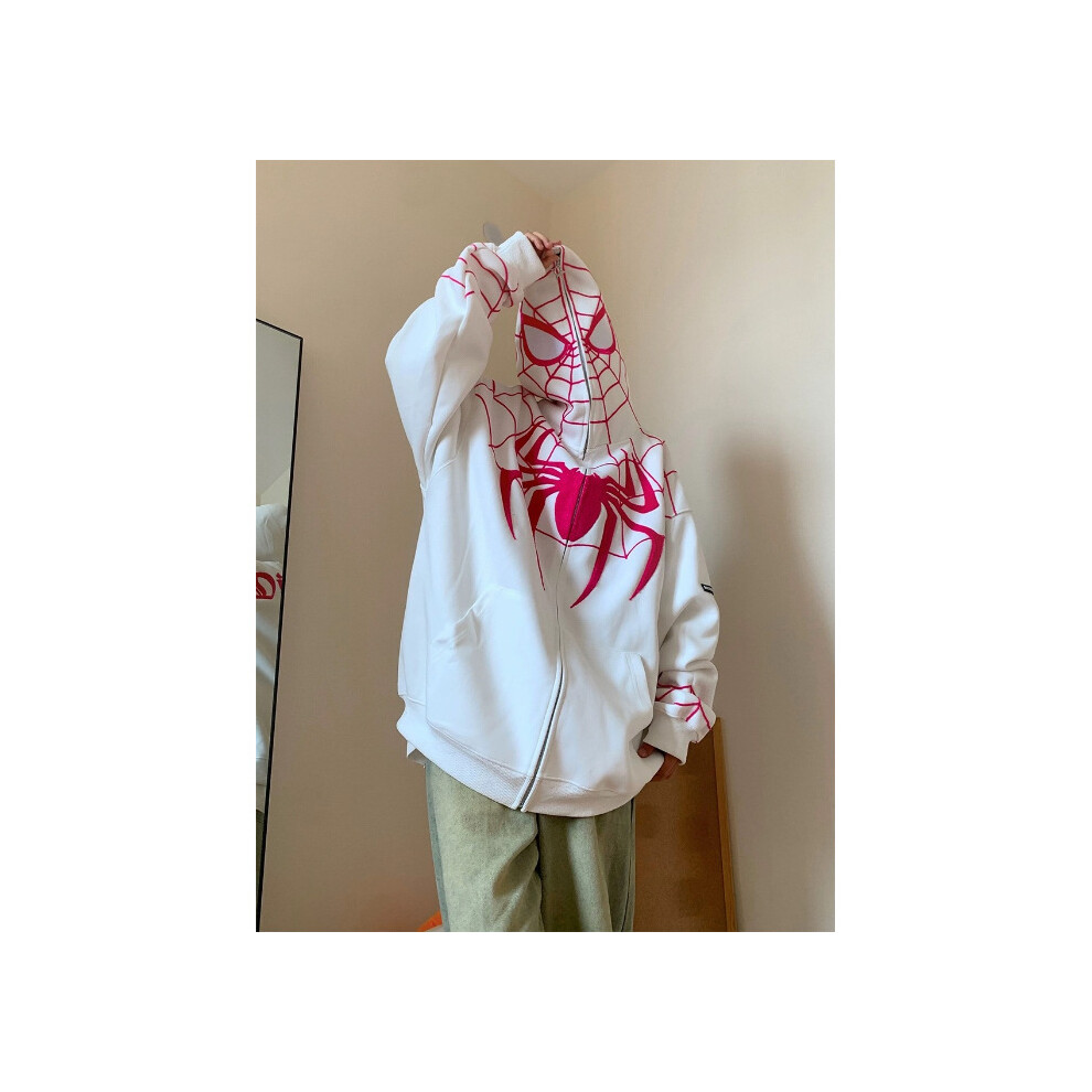 (White (Silver Fox Fleece) Lined & Thickened, L) Anime Spider-Man Hoodie Jacket Women's Autumn Winter 2025 New Arrival American-Style Design Casual Ca