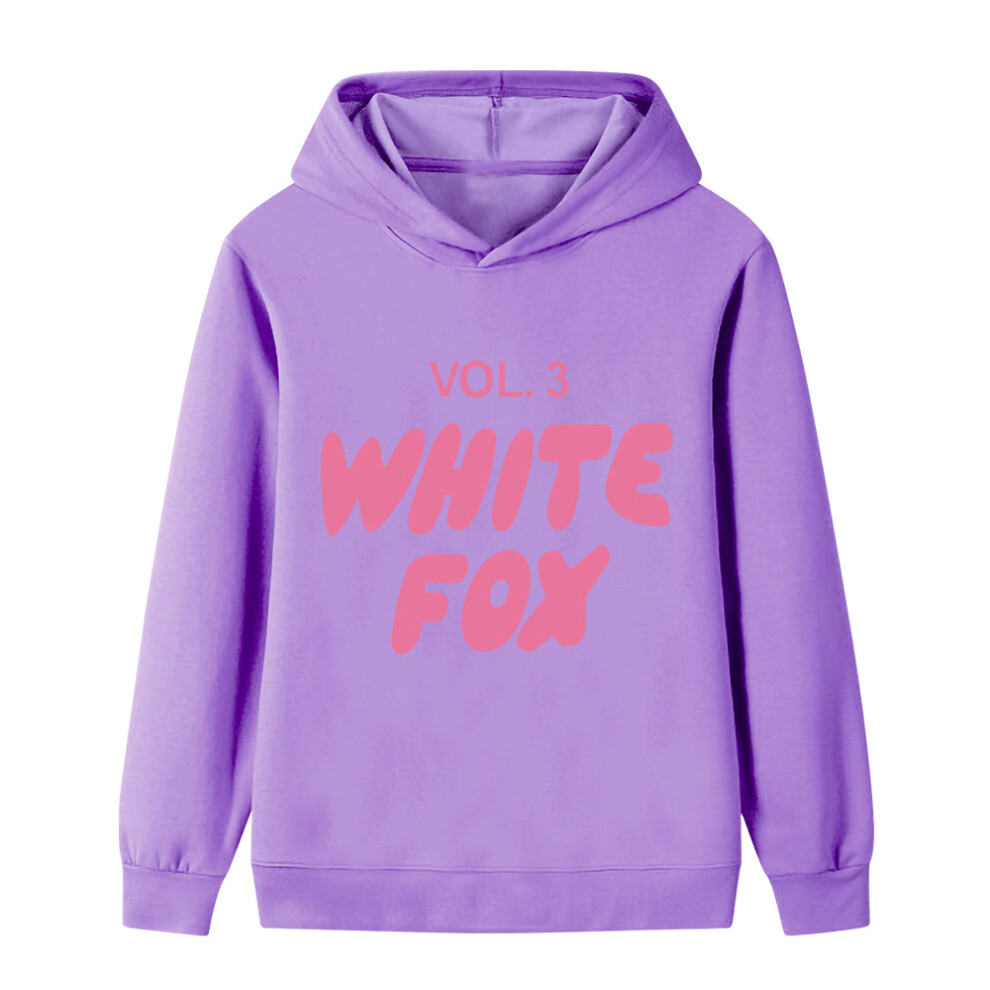 (Purple, 160cm) Cartoon WHITE FOX printed hoodie for middle and older children B1130