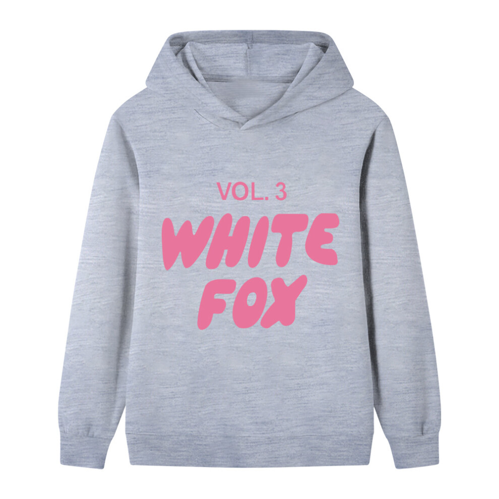 (grey, 170cm) Cartoon WHITE FOX printed hoodie for middle and older children B1130