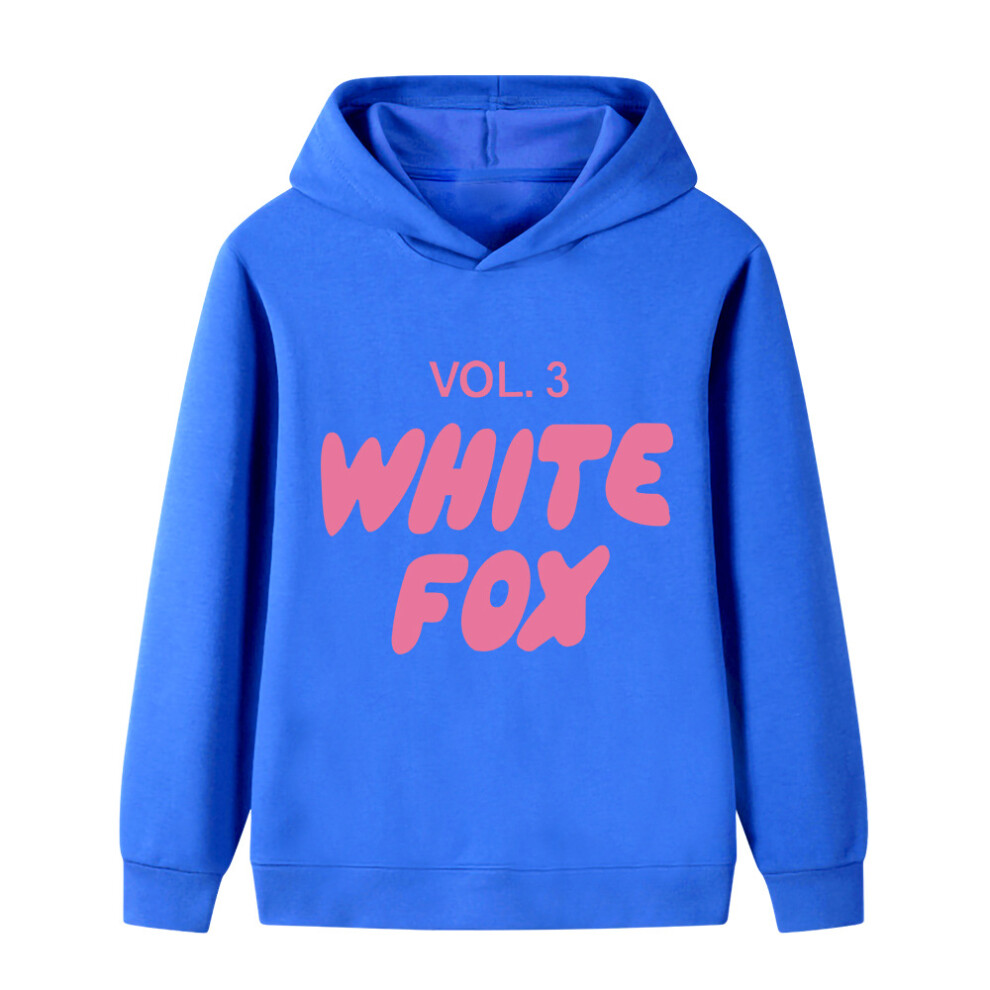 (Colorful Blue, 120cm) Cartoon WHITE FOX printed hoodie for middle and older children B1130