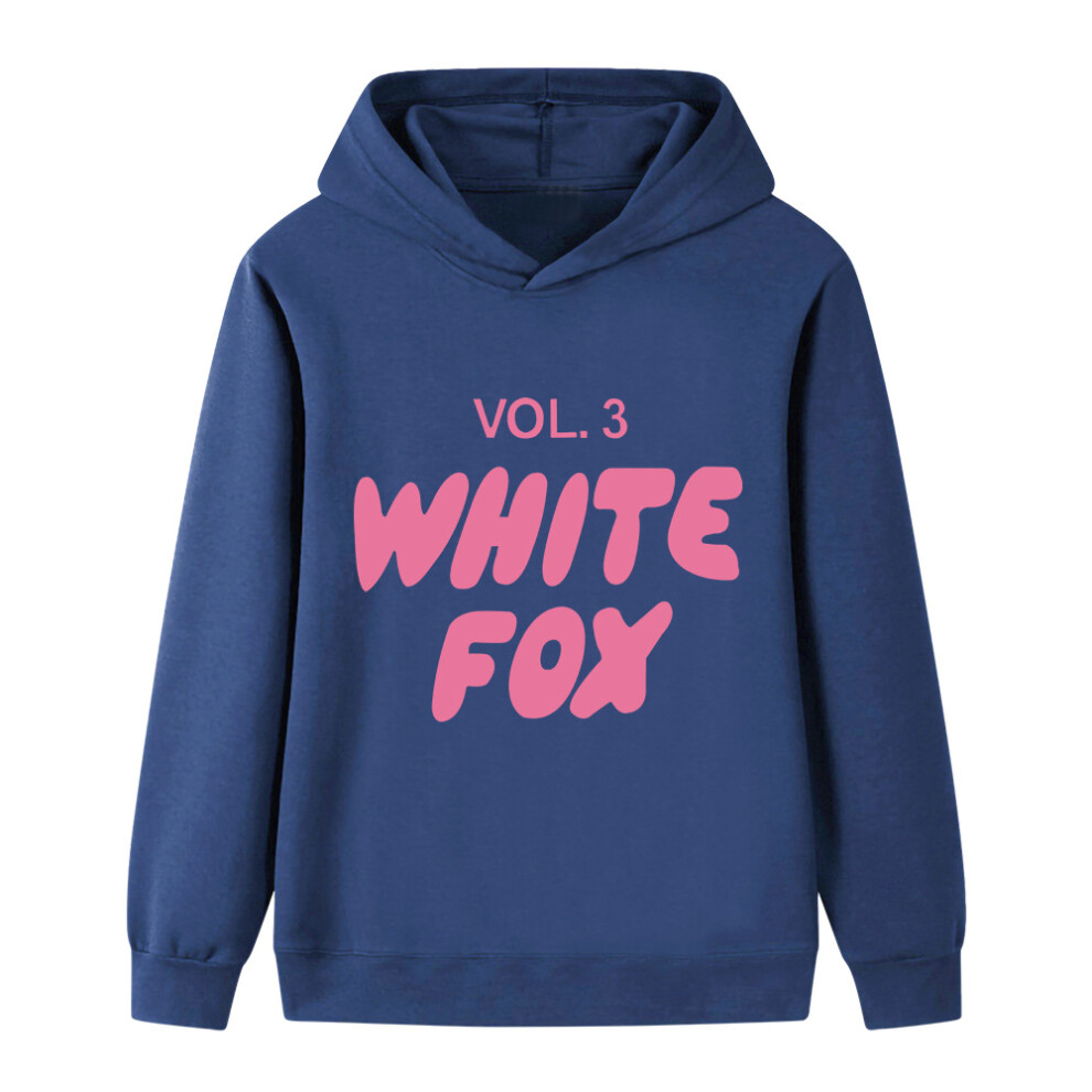 (navy blue, 150cm) Cartoon WHITE FOX printed hoodie for middle and older children B1130