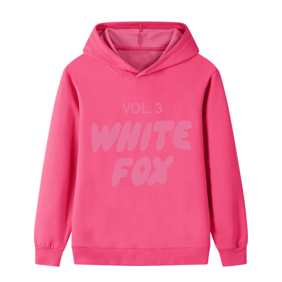 (Rose Red, 170cm) Cartoon WHITE FOX printed hoodie for middle and older children B1130