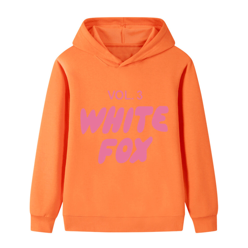 (orange color, 140cm) Cartoon WHITE FOX printed hoodie for middle and older children B1130