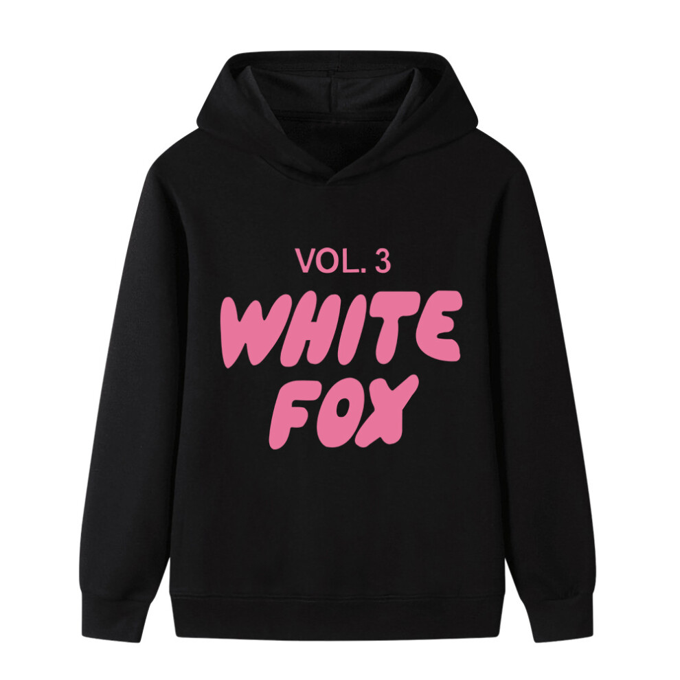 (black, 110cm) Cartoon WHITE FOX printed hoodie for middle and older children B1130