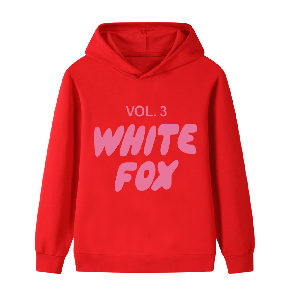 (bright red, 120cm) Cartoon WHITE FOX printed hoodie for middle and older children B1130